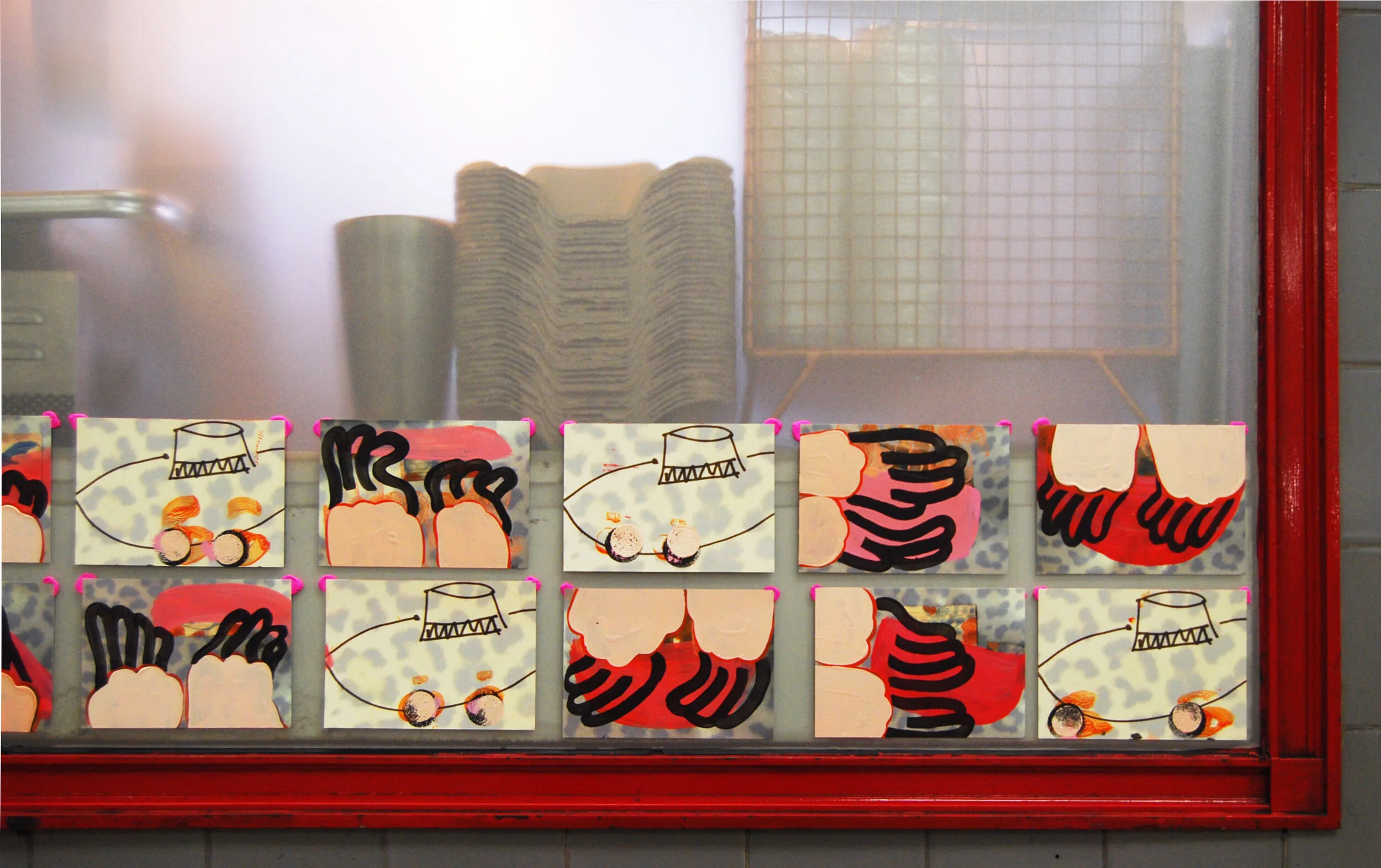 B A N D I T S Moonlight Heist Acrylic and blu tack on postcards; 2020